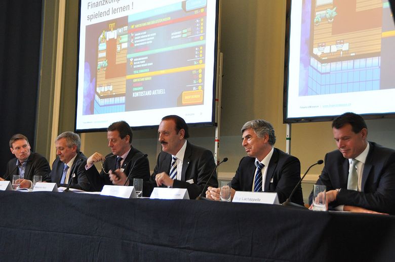 Das erste Lernspiel, «FinanceMission Heroes», wurde am 25. Mai 2016 in Basel der Öffentlichkeit präsentiert. Schülerinnen und Schüler können es als App auf ihrem Smartphone, Tablet oder am PC spielen. Im Spiel schlüpfen sie in die Rolle eines Superhelden und müssen nachts in ihrer Stadt Banküberfälle verhindern und räuberische Roboter bekämpfen. Damit ihnen das gelingt, gilt es, geeignete Finanzierungsstrategien für Ausrüstungsgegenstände zu wählen, die Zeitressourcen gut einzuteilen und richtig zu budgetieren. Für den Einsatz im Schulunterricht umfasst «FinanceMission Heroes» Begleitmaterialien für die Sekundarstufe I. Die Unterrichtsmodule und Arbeitsblätter ermöglichen so eine begleitende Auseinandersetzung von Finanzfragen, die im Spiel auftauchen. Die Unterrichtsmaterialien und weitere Informationen können Lehrpersonen, Eltern und Interessierte kostenfrei unter www.financemission.ch beziehen. Das Game «FinanceMission Heroes» kann direkt über www.financemissionheroes.ch, «Google Play» und «App Store» kostenlos heruntergeladen werden. (Fotos: Belinda Meier)